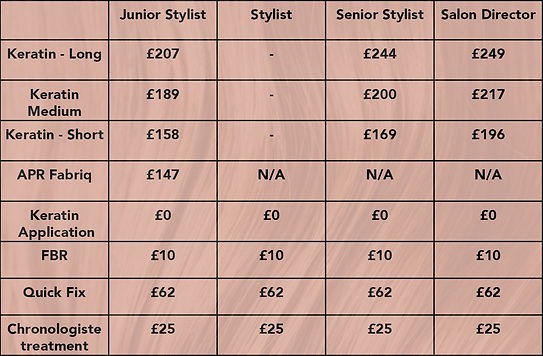 we offer a full range of hair services, from cutting & styling to colouring, including balayage, air touch, tints and full colour coverage. please see our price lists below.